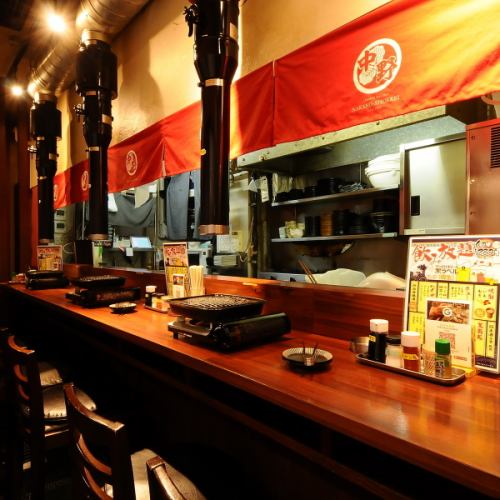 【カウンター席】1名~2名様に大人気!1人飲みやサクッとデートにいかがですか♪目の前で調理風景が楽しめる、特等席。おひとりさまもデートも気軽に使える落ち着いた空間。